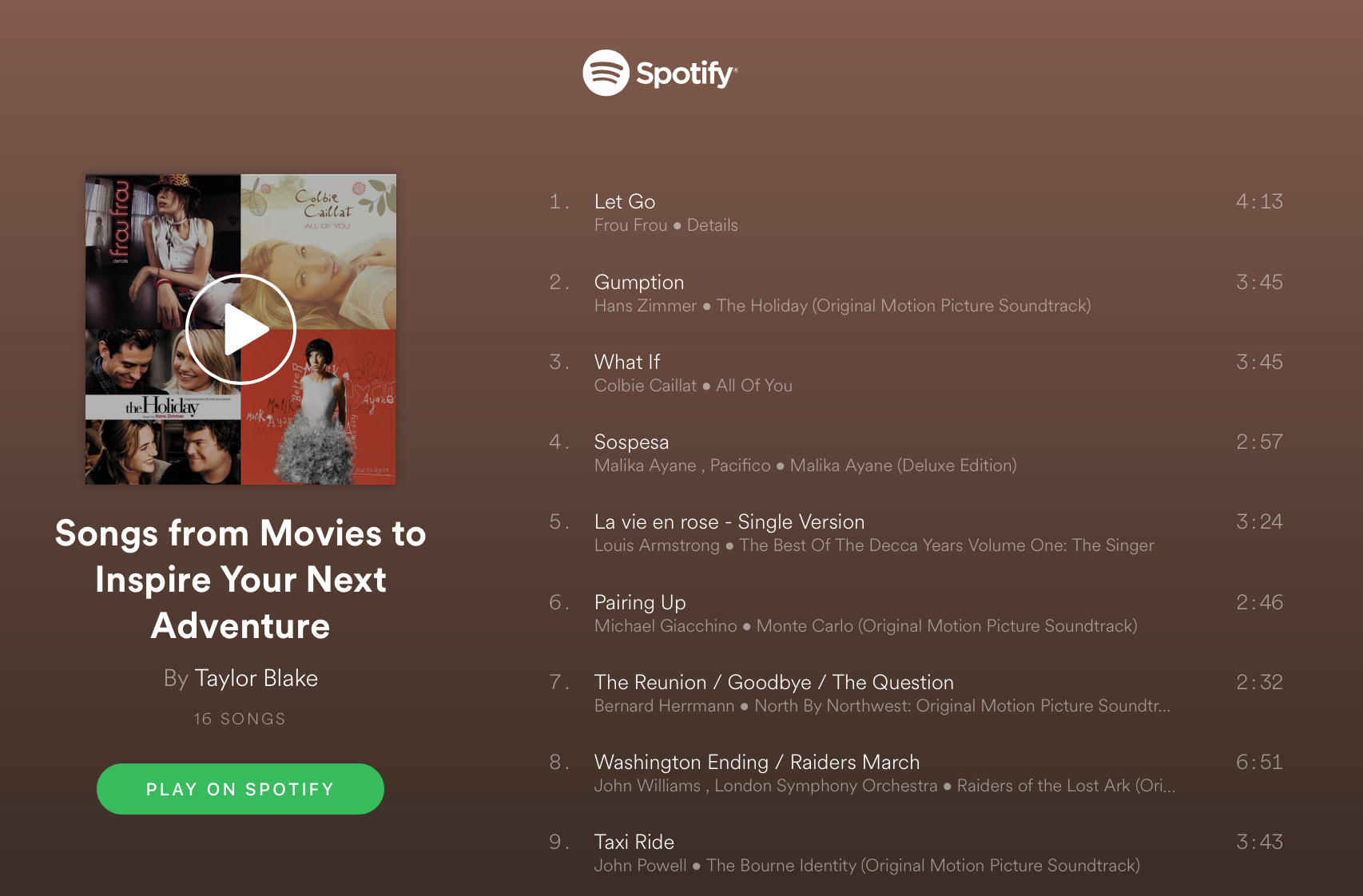 Actually, on second thought, how about a full playlist? Check out this Spotify playlist with some of the best music from each of these movies to provide the soundtrack as you prep for your next adventure: