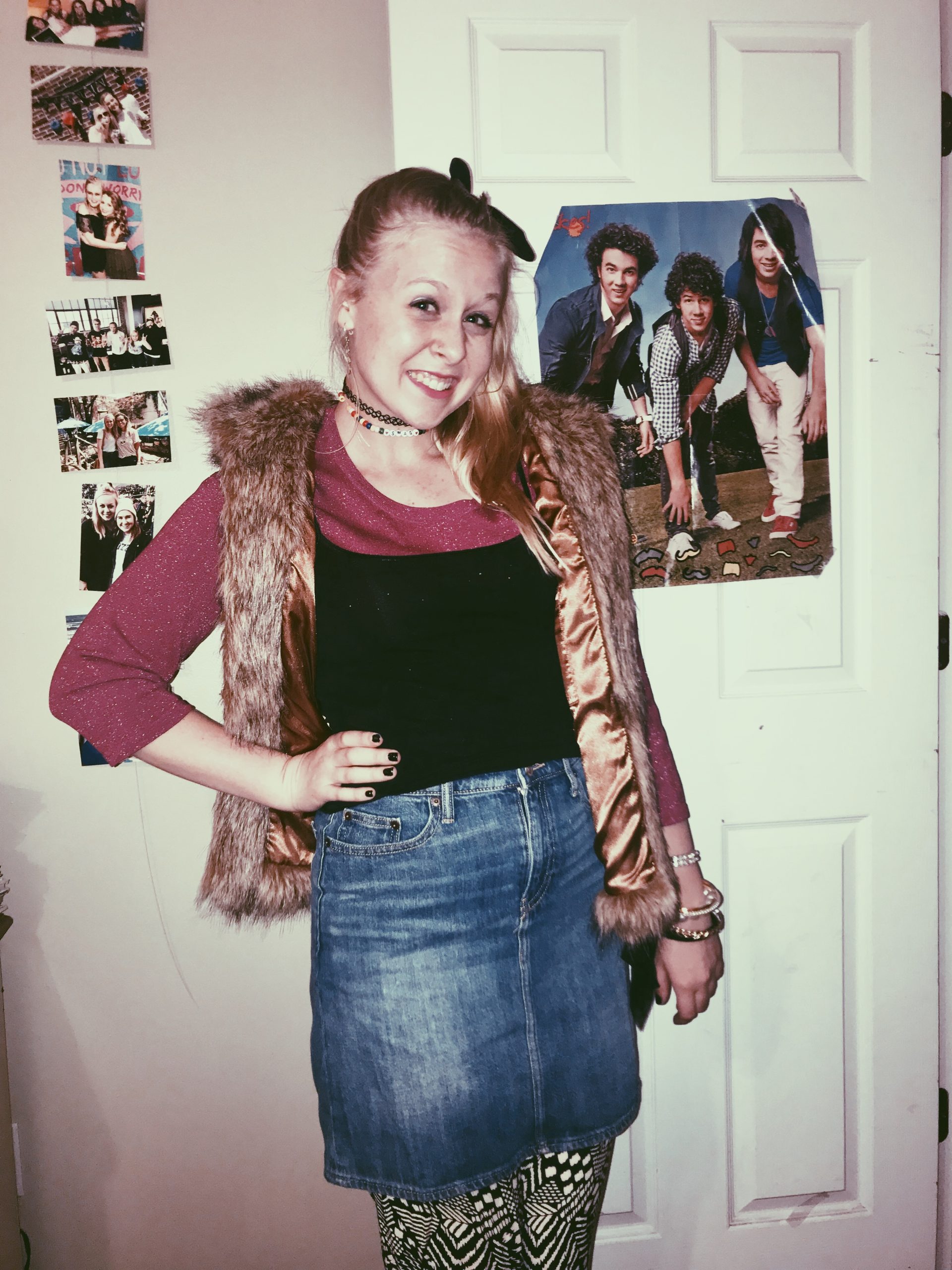This year I dressed up as my 6th grade self in all her Jonas Brothers fandom. My roommate and I scoured Goodwill, and I scored a sparkly pink sweater for 87 cents. I strutted the classic side pony tail, excessive bracelets, layered look and leggings underneath a skirt. It was something else; let me just say that.