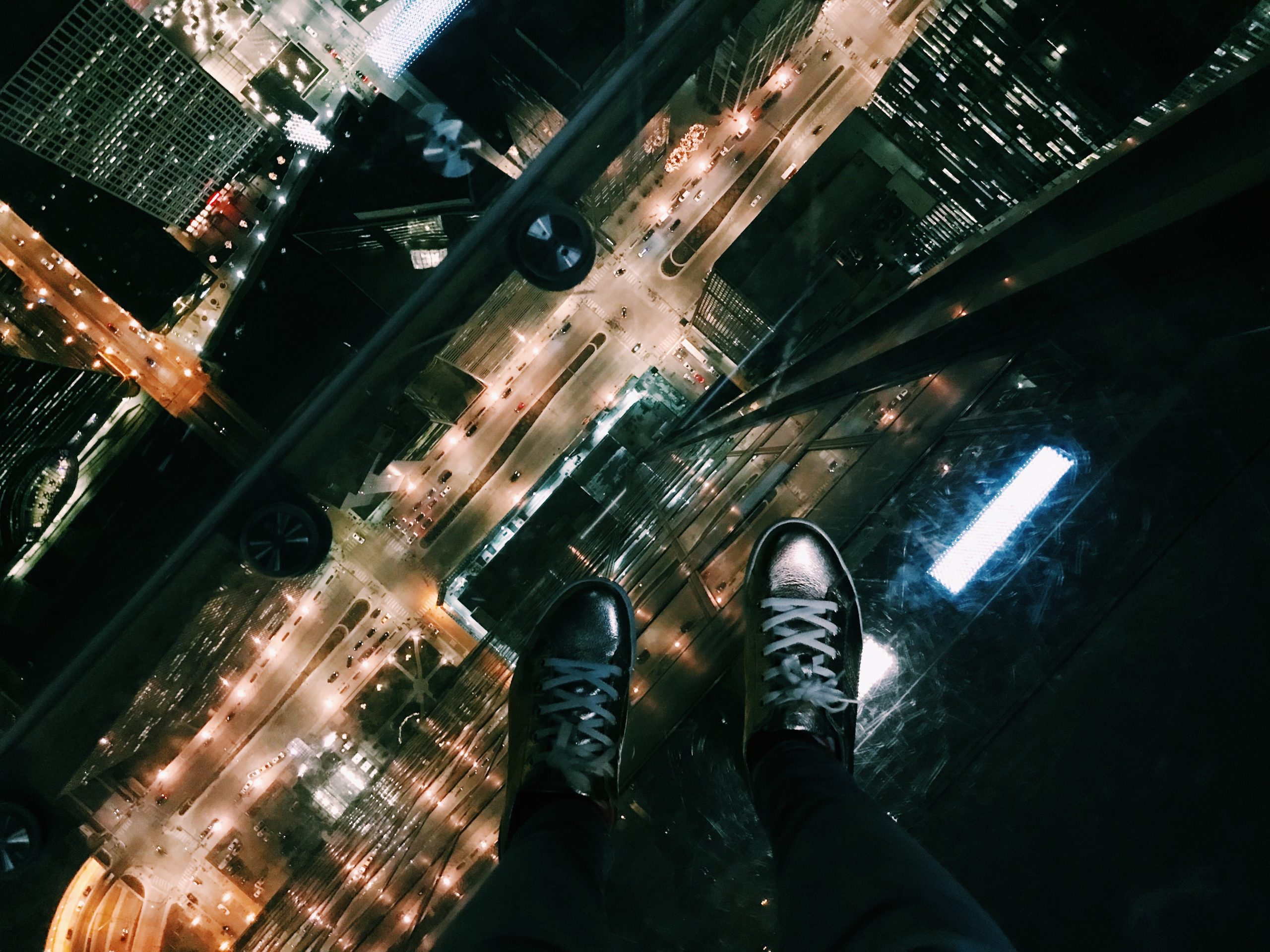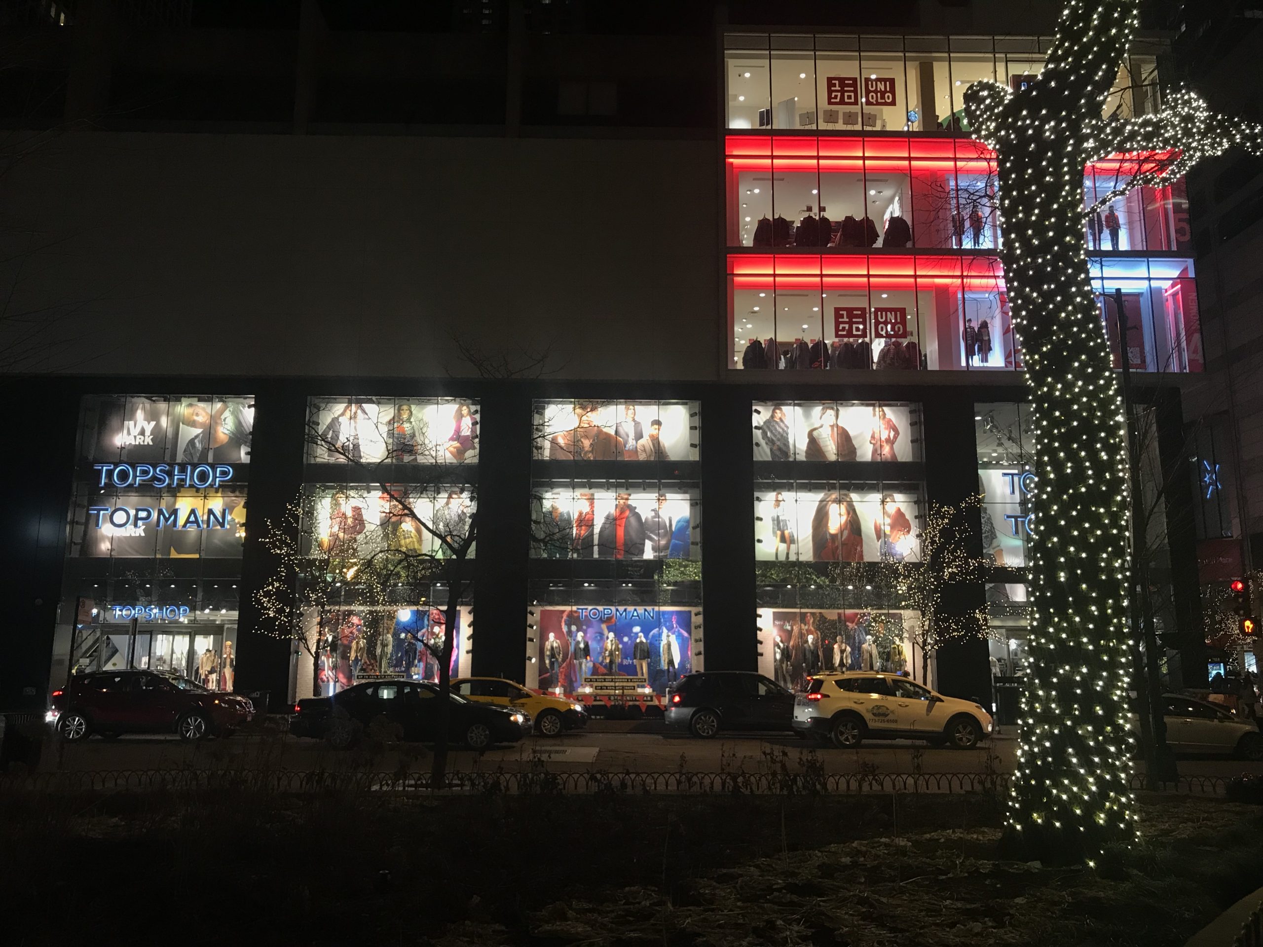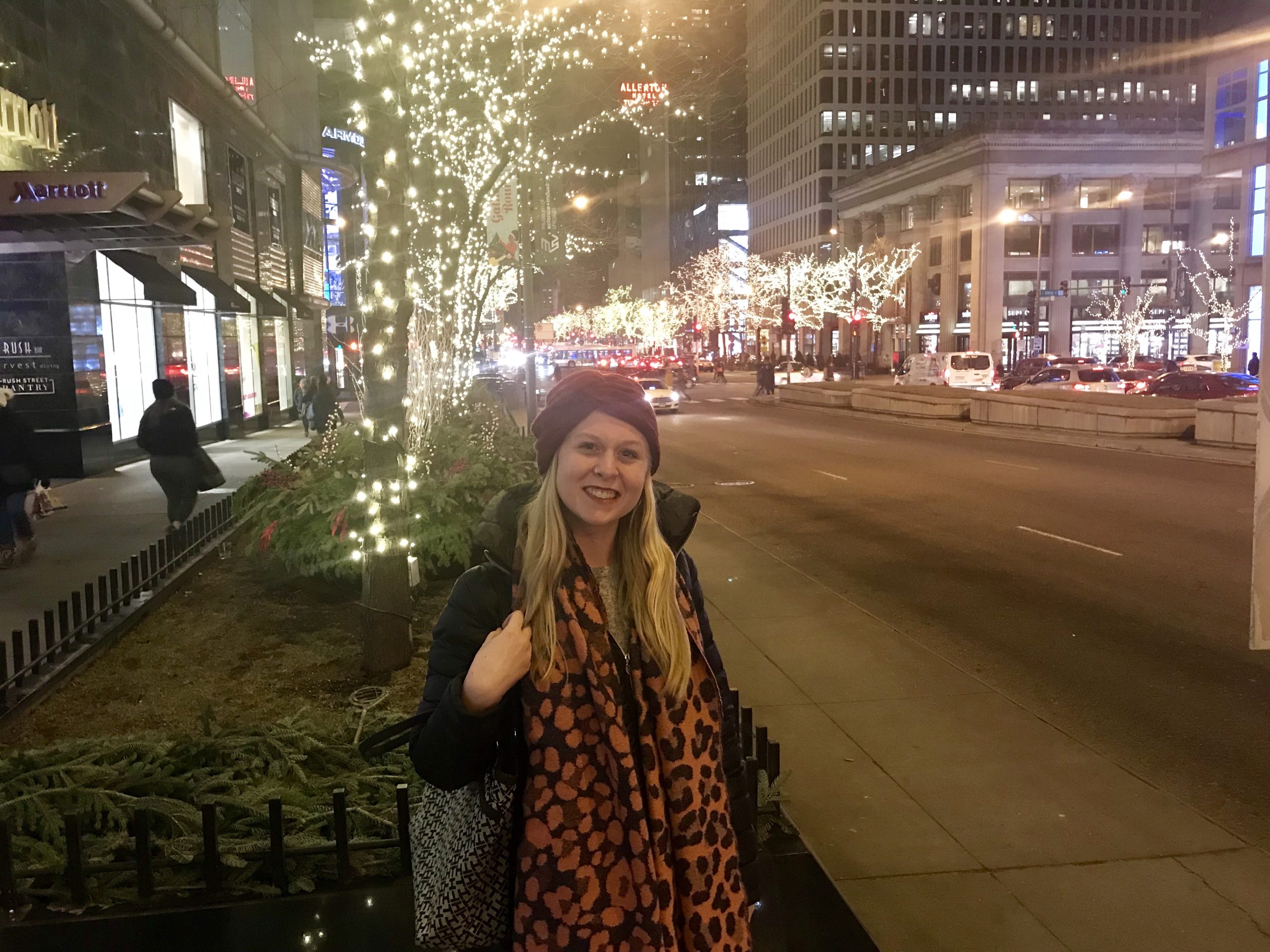 Short but sweet. I was in Chicago for less than 24 hours, but it was packed with activity and a great getaway. And all at Christmastime (with surprisingly good weather for Chicago)! We started our night at the Skydeck in Willis Tower. We paid $24 for each ticket and zoomed up the 103 floors in a speedy elevator. It was a bit dizzying but worth it. Tall buildings are neat, but they’re all pretty much the same, right? Wrong. I enjoyed the Skydeck more than the Empire State Building because you could look right underneath your feet. We had 60 seconds to get pictures in the little cube overlooking the city. Although the photographer took professional photos we could buy for an outrageous price, he also took some on my phone, which was much appreciated. The walls had facts about Chicago and the building, which attracts 1.6 million visitors per year!