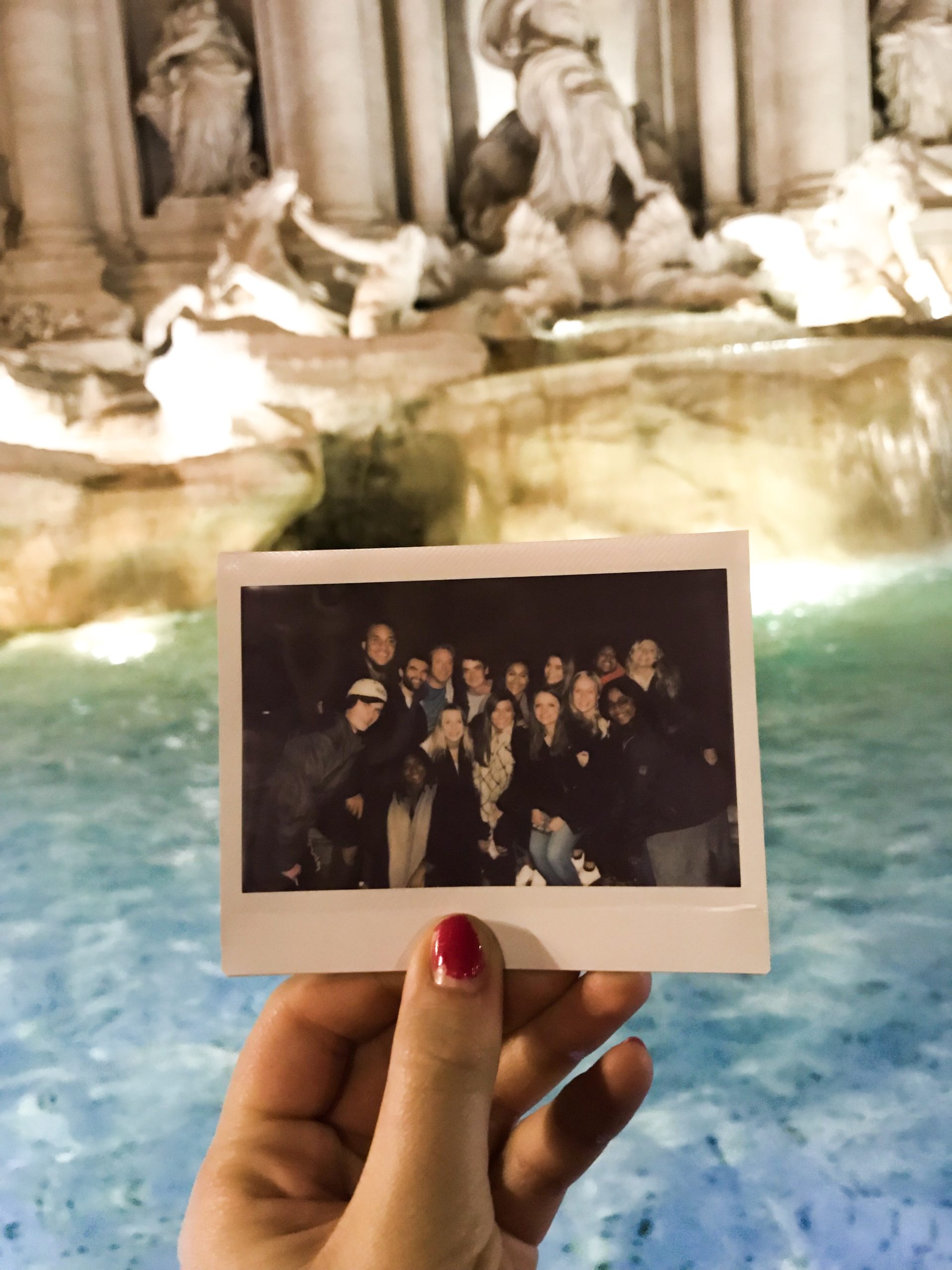 It’s a classic, but it’s still so stunning. Our group stopped by the Trevi Fountain at least four times, and the architecture truly is breathtaking. It’s smushed in the middle of a bunch of winding cobblestone streets, but then again, so is most of Rome. (Look both ways a few times so you don’t get run over by a moped.) You turn the corner, and you’re like, ope there it is. We paid a guy with a Polaroid camera to take a picture of our group, and then I took a photo of the Polaroid in front of the fountain; this is one of my favorites from the trip.