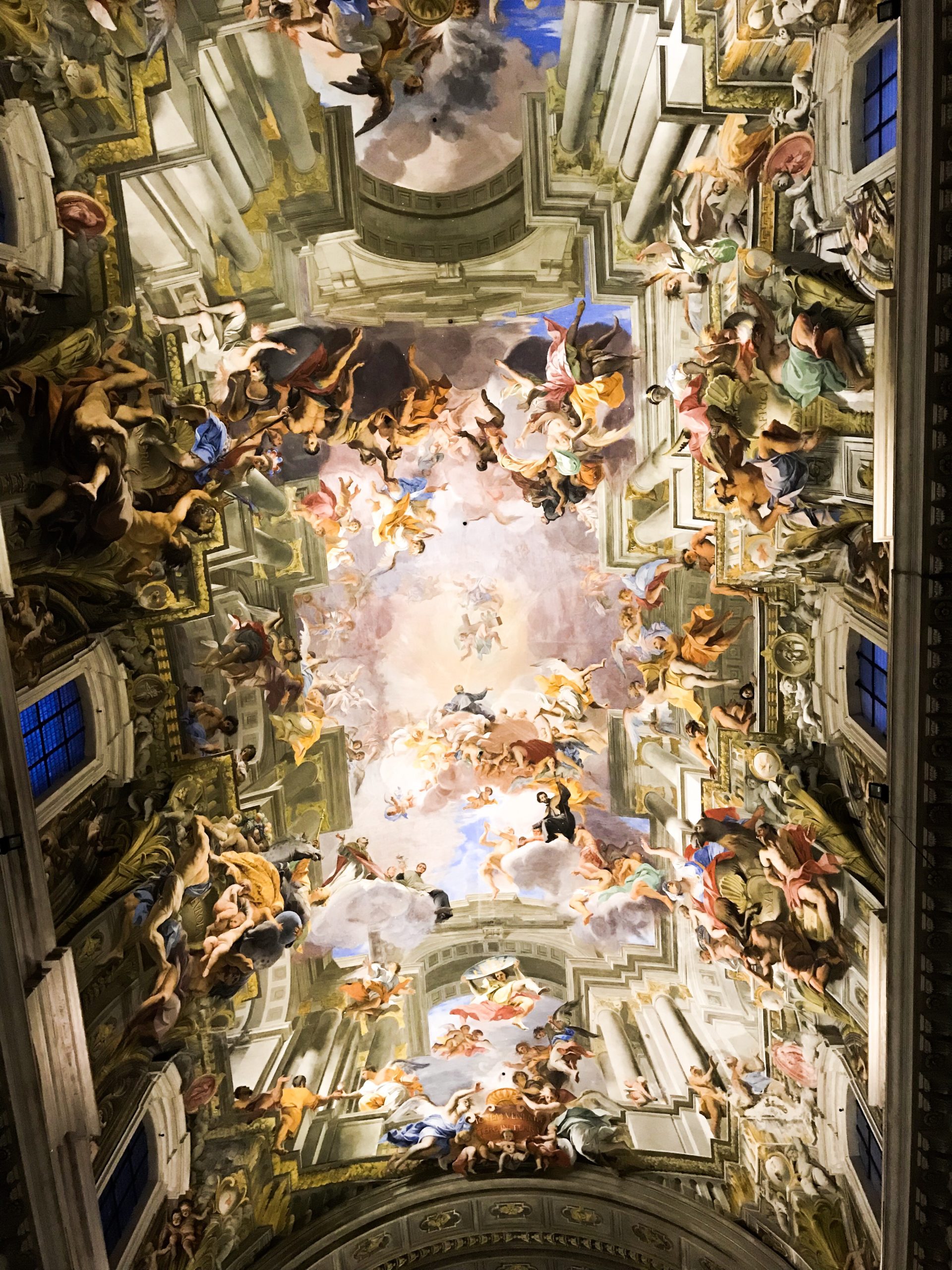 Even when I’m in Rome, I still find a way to get my French in. The church is situated right by the Senate building, and although it doesn’t take too long to explore, it’s breathtaking all the same. The ceiling is crusted with gold, and wall-sized paintings surround you.