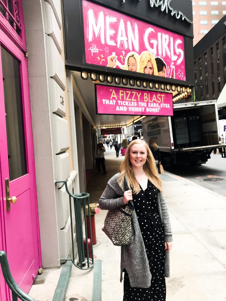 After our meandering, we made our way to see Mean Girls on Broadway. I was entirely shook that my dad agreed to see this show as this is anything but his cup of tea. (Seriously, brownie points for life, Dad!) The cast had a lot to live up to from all the fame of the movie, and they rose to the occasion. Unlike the movie, the show was a musical, and it really served to reinforce the themes of the show. The set was transformed seamlessly from a high school to a mall, and they projected pages of the burn book onstage.