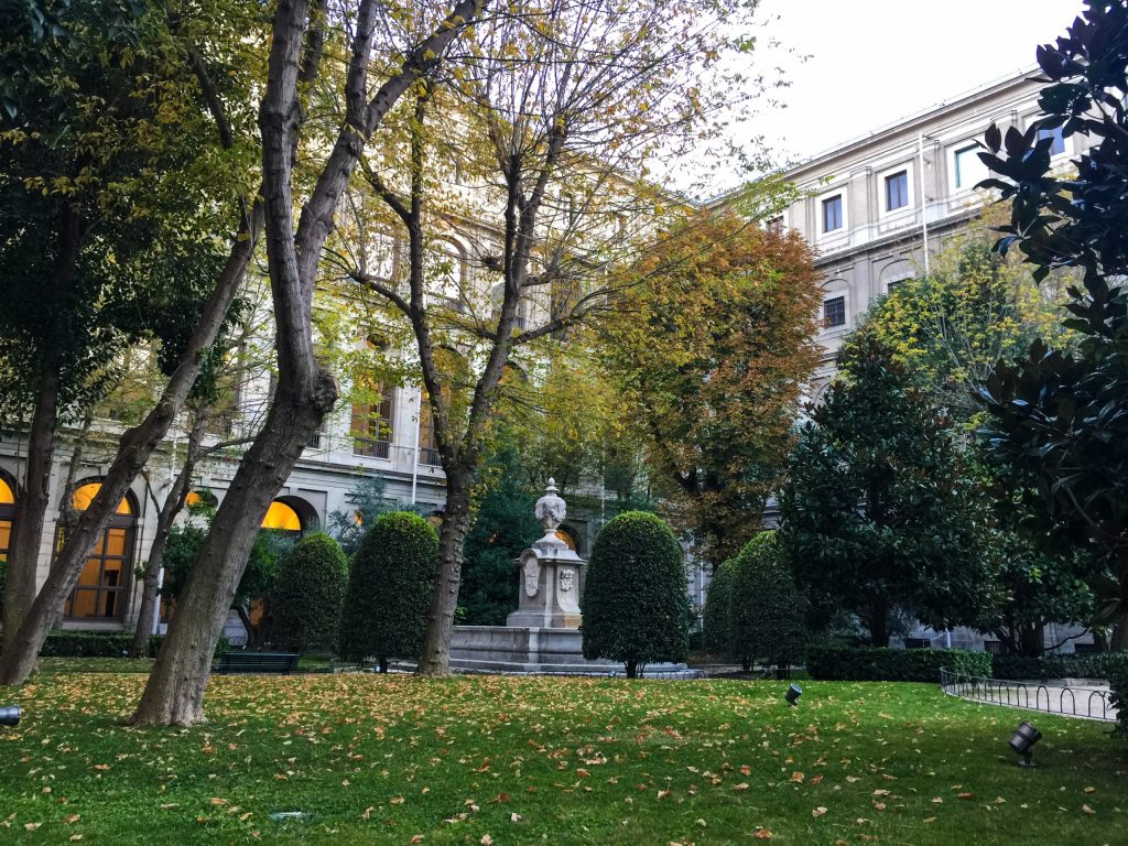 We had been walking through urban Madrid from Puerta del Sol, and construction and scaffolding scattered the sidewalks. And then we came to the intersection where Plaza de Cibeles. And its architecture took my breath away. In 1782, the Cibeles Fountain was designed and served water to Madrid dwellers, but in 1895, the fountain was moved to its current location for decoration, according to Civitatis. The buildings that surround the fountain include headquarters for the Madrid City Council and the army among others. We simply walked by to enjoy the views and take photos, but you can go to Palacio Cibeles for a rooftop meal.