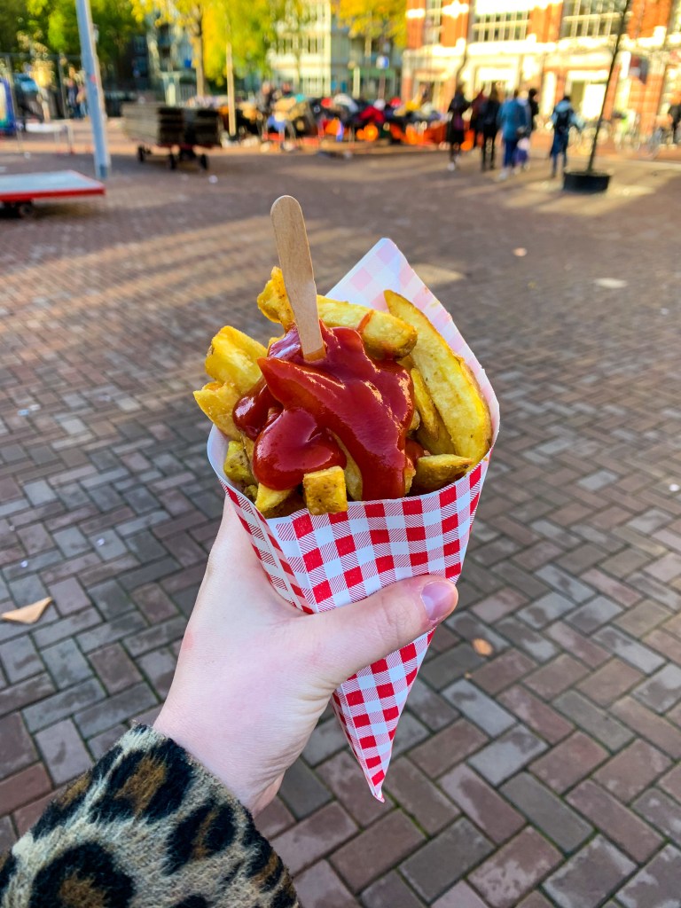 Hear me out: I live in France, I’ve been to Belgium, so I know fries. But there was something different about the fries in Amsterdam, something that made them notably better. There are street vendors selling fries, and they just lob sauce onto your order of fries. If you want to try a specialty, order the Dutch satay sauce, which has a peanut base.
