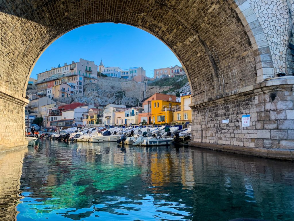Out of the best beaches in Marseille, Vallon des Auffes is one of my favorites. It’s nestled in a small Provençal port with docked boats, several restaurants and small, brightly colored homes. According to Marseille Tourism, auffe is a plant that is used to make ship ropes and fish nets. Every time I walk by these darling apartments overlooking the port, I ask myself why I don’t live in this Marseille neighborhood.