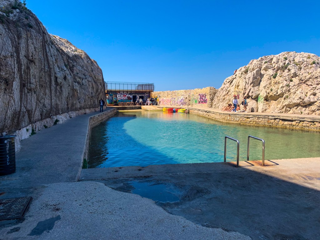 This beach is located in a ritzy neighborhood along La Corniche. One time I was in the bus just a stone’s throw away from this beach, and the bus was stopped and we all had to get out as the road was blocked. Why, you might ask? Apparently, President Macron was dining at Le Petit Nice Passedat, the étoilé restaurant overlooking this beach. All that to say, l’Anse de la Fausse Monnaie feels like living in a postcard and is even a spot frequented by the French president himself.