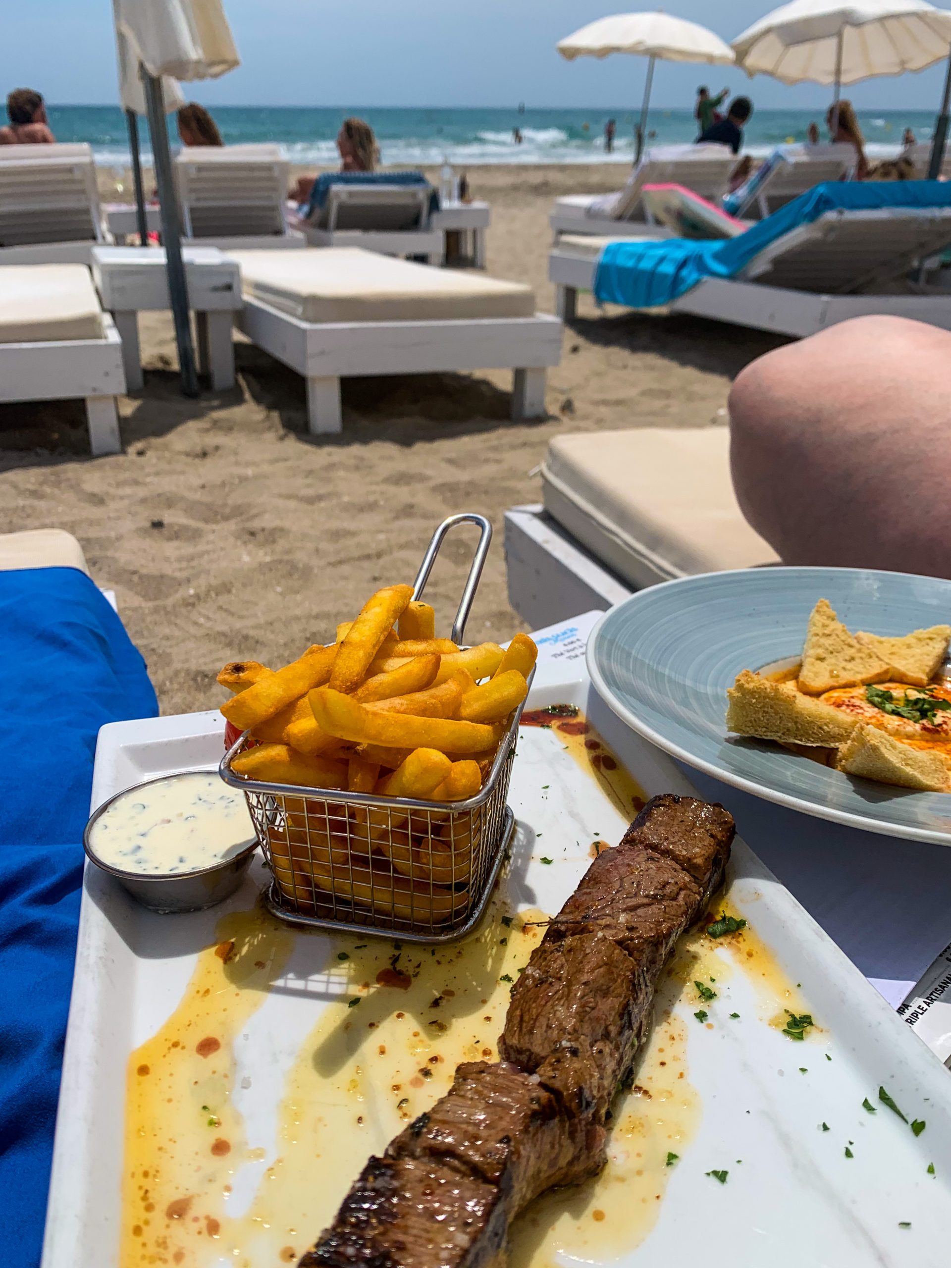 Lying out on a beach chair all day? Sign me up! This was the perfect way to spend the day. We discovered La Ola, a beach restaurant where you can rent beach chairs for a half or full day. It’s most delightful since the waiters come right to your chair where you can order fruity cocktails, apéro and meals. Kelly and I spent the better part of the afternoon just lying in the sun, having girl talk and enjoying the sea. I’ve been to beach restaurants like this in St. Tropez, which cost an arm and a leg. But we were both surprised that we walked paying less than 50 euros per person for a beach chair rental, drink, meal and dessert. Honestly, this find was my favorite part of the weekend.