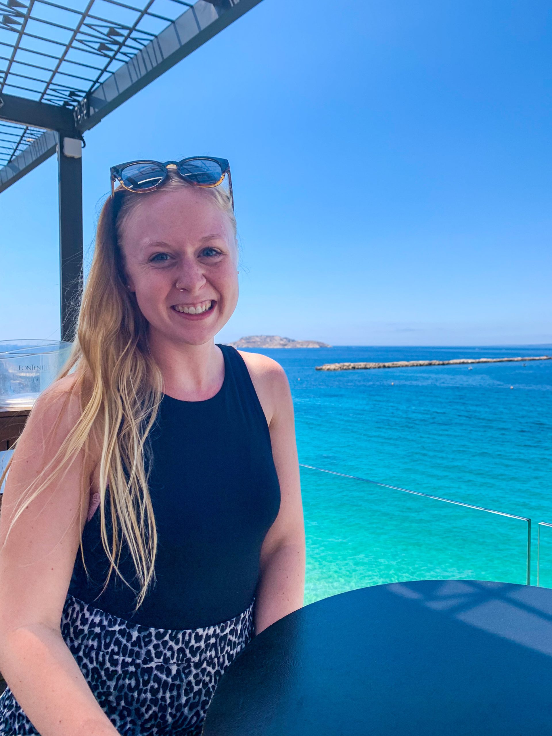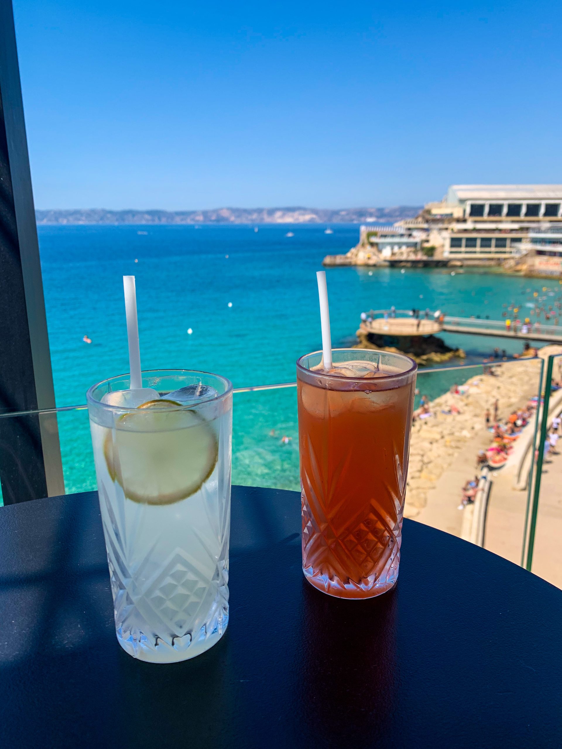 Just steps from the Vélodrome, or the soccer stadium where l’OM plays, sits yet another rooftop in Marseille. My friend and I enjoyed cocktails on this modern rooftop bar while a match was happening. Definitely a fun vibe for game day. When the team scored, we could hear cheering. Whether you’re a sports fan or not, Massilia Beach is a great spot for ambiance.