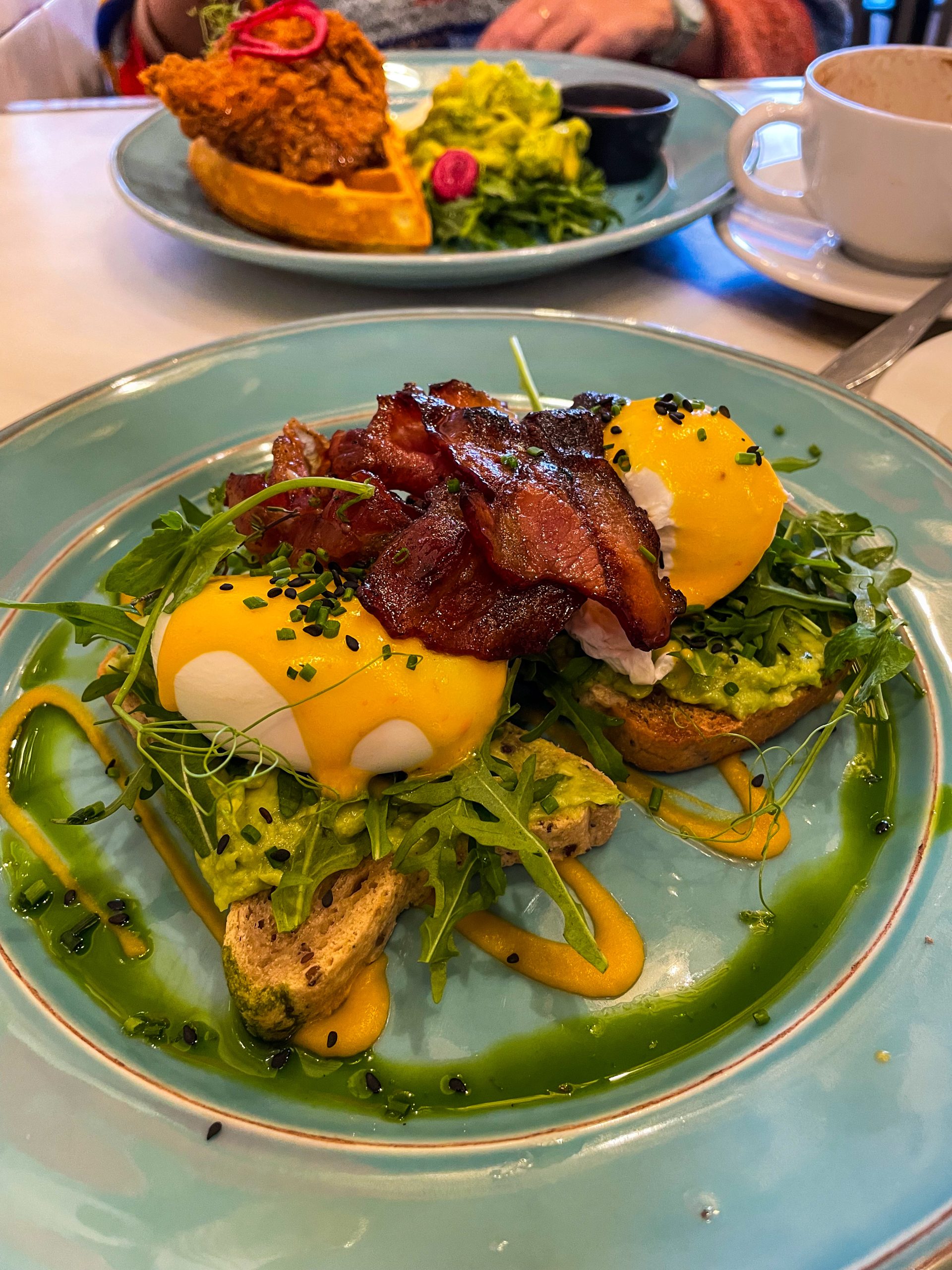 If it wasn’t clear, I’m a fan of brunch. So with two mornings together during our weekend in Porto, we had to brunch both days. We also read good reviews for CA Downtown. And as we walked up to the restaurant, the long line only confirmed that. We had to wait a bit to get a table, but the service was efficient. I enjoyed gluten-free eggs Benedict, and Amber opted for the chicken and waffles. The wait was worth it!