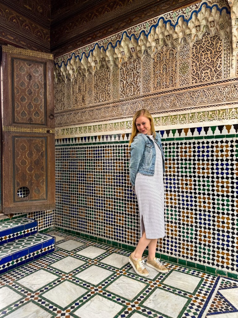 While I enjoyed exploring Bahia Palace, I adored my visit to El Badi Palace, which dates back to the 1500s. We had so much fun wandering the ancient walls and palace grounds. We weren’t able to book in advance but had no problem buying tickets on the spot — also in cash. Be sure to walk through its museum to see photos of Morocco dating back to the the 1930s and learn more about Moroccan history and culture.