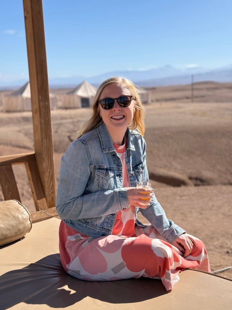 Our excursion included transfer from Marrakech. We were in a small group of about 8 people and made the 1-hour journey into the desert with our driver Omar. Just the drive was stunning! Once we arrived, we had time to lounge at the pool and sip on our welcome Moroccan mint tea. It was a bit too chilly to swim, so we laid out in the sun, which was still entirely a delight.