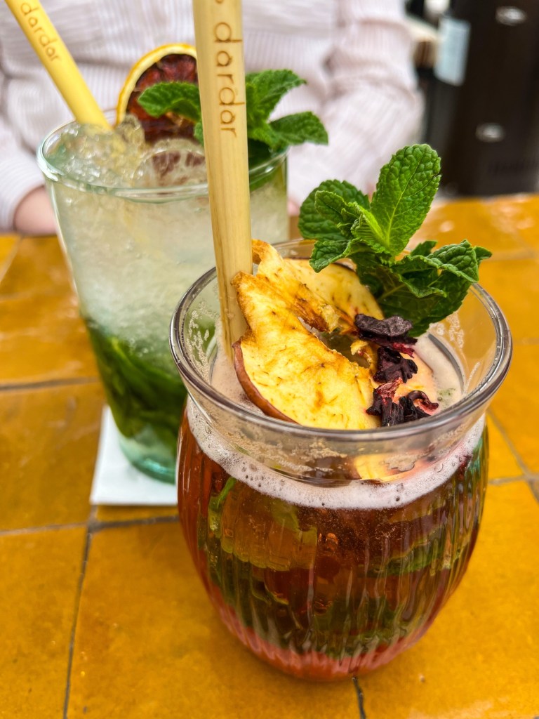 During your long weekend in Marrakech, be sure to book at least one rooftop experience. I think my favorite experience was at Dardar, a swanky bar and tapas in the heart of the souks. I had one of the best mocktails of my life (the Zwina mocktail with hibiscus, mint and ginger ale) and Kelly adored her mojito. The ambience was chic, the drinks exceptional, the views gorgeous. Be sure to book ahead!