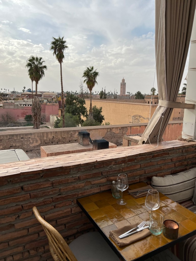 My flight got in earlier than Kelly’s, so I had Friday afternoon to myself and wanted to get something to eat. I asked the hotel staff who recommended Les Jardins du Lotus. It was about a 10-minute walk from the riad. The interior was magnificent with its pink decor and plants lining the wall. I will add that it is very Instagrammable but probably isn’t the most authentic Moroccan experience. However, I had a lovely table for one and struck up a conversation with a Québécois couple next to my table and loved my beef tacos — so not the most authentic Moroccan meal. But honestly for the views and the experience, I still would recommend a trip to Les Jardins du Lotus. I ended going back for a second time with Kelly later in the weekend when we were in search of a nearby restaurant to the hotel.