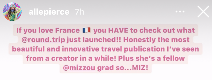 Shoot me an email at roundtriptravelblog@gmail.com to talk about partnering with me. I look forward to hearing from you!
